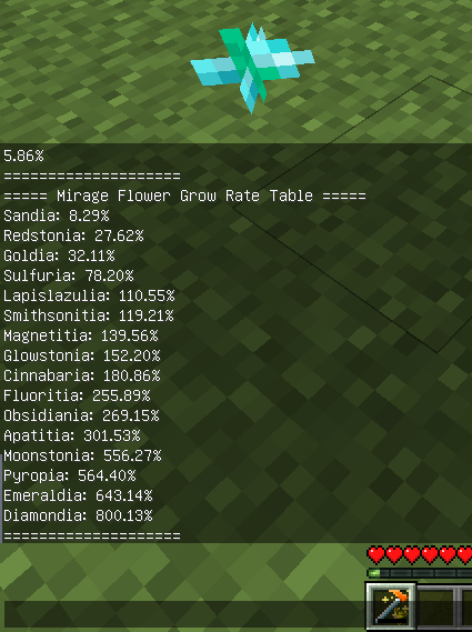 ミラージュの花が特定のブロックの上に植えられていると成長に倍率がかかる。