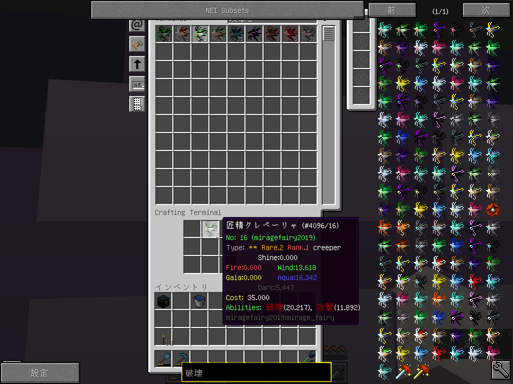 また、Applied Energistics 2のようなチェスト側の検索機能を併用すると2重に絞り込むことができます。